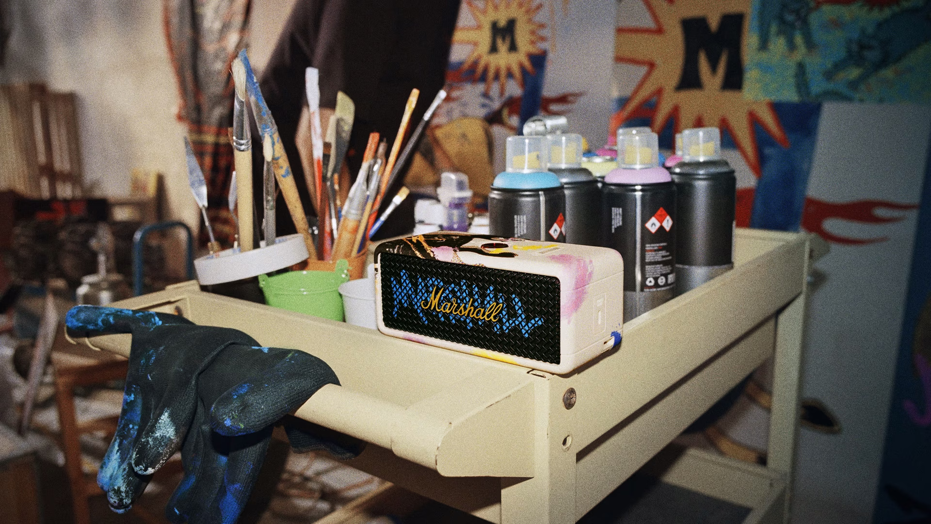 Kết quả? Một họa tiết độc bản, đầy chuyển động và rực rỡ trên thân loa Emberton III quen thuộc. Đây không đơn thuần là một chiếc loa, mà là một tuyên ngôn thẩm mỹ, một món đồ sưu tầm đậm chất lifestyle, sẵn sàng làm điểm nhấn “chói lọi” cho không gian sống của bạn.